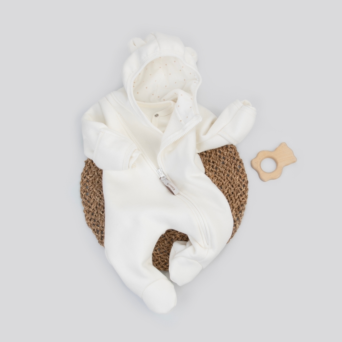 Косая молния на всю длину, делает процесс одевания малыша простым и удобным.