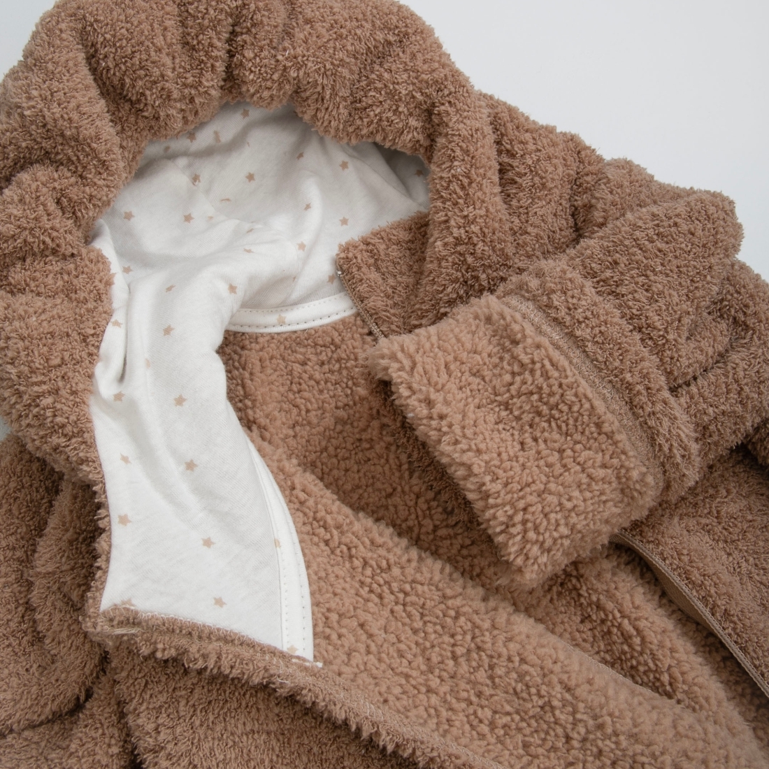 Отвороты на рукавах позволят спрятать ручки от ветра. Ножки закрыты