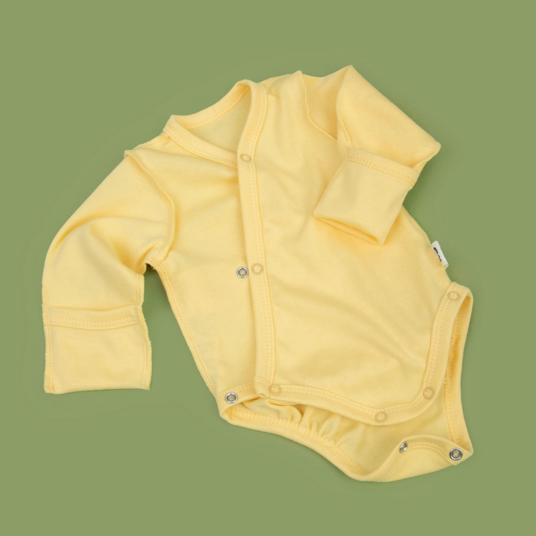 Боди с запахом, с симметричной застежкой на кнопки.