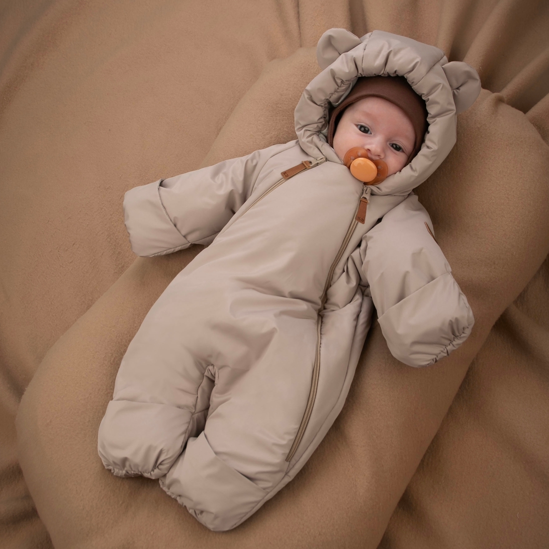 Капюшон на резинке, плотно прилегает к голове малыша.