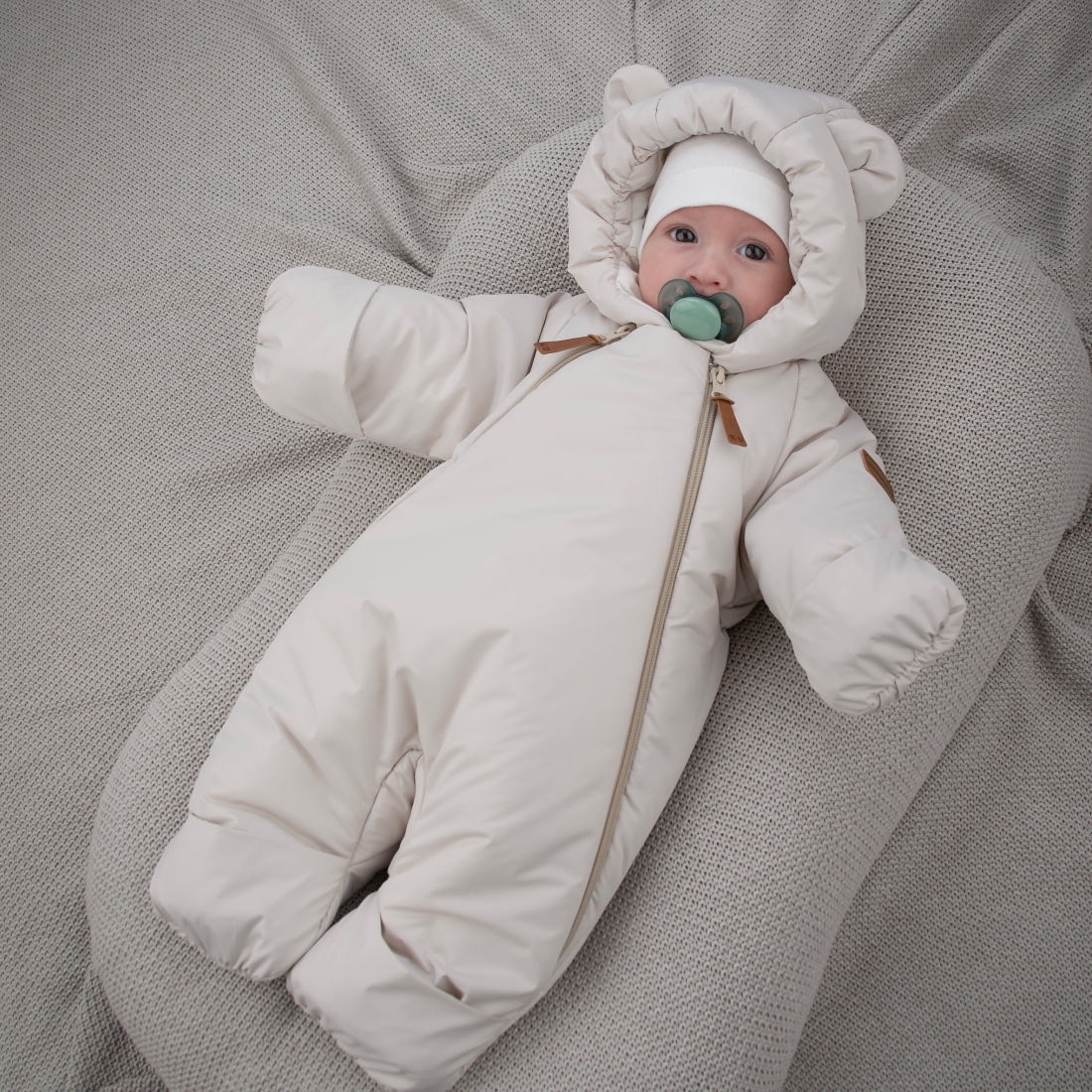 Капюшон на резинке, плотно прилегает к голове малыша.