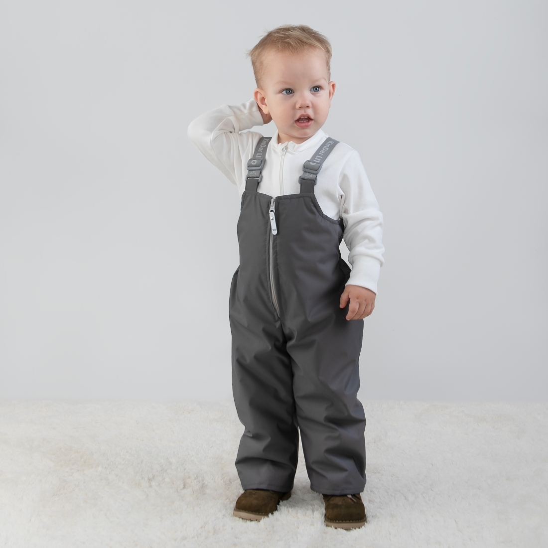 Застежка молния, регулируемы подтяжки на мягкой резинке.