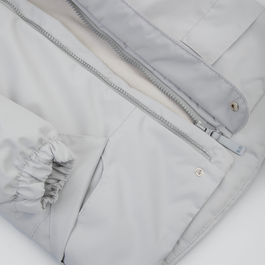 Капюшон с отворотом. Застежка молния с планкой, фиксируется на кнопки.