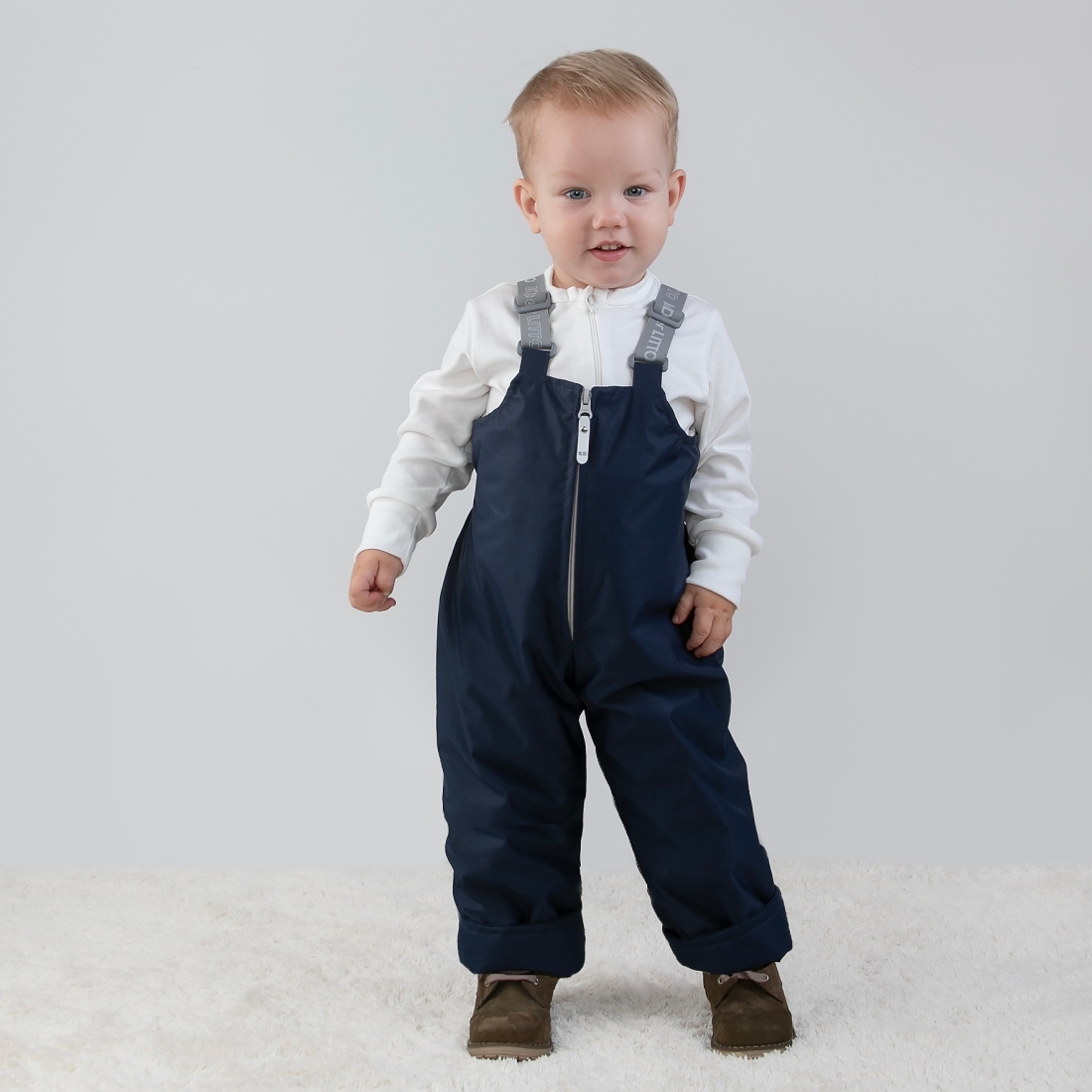 Застежка молния, регулируемы подтяжки на мягкой резинке.