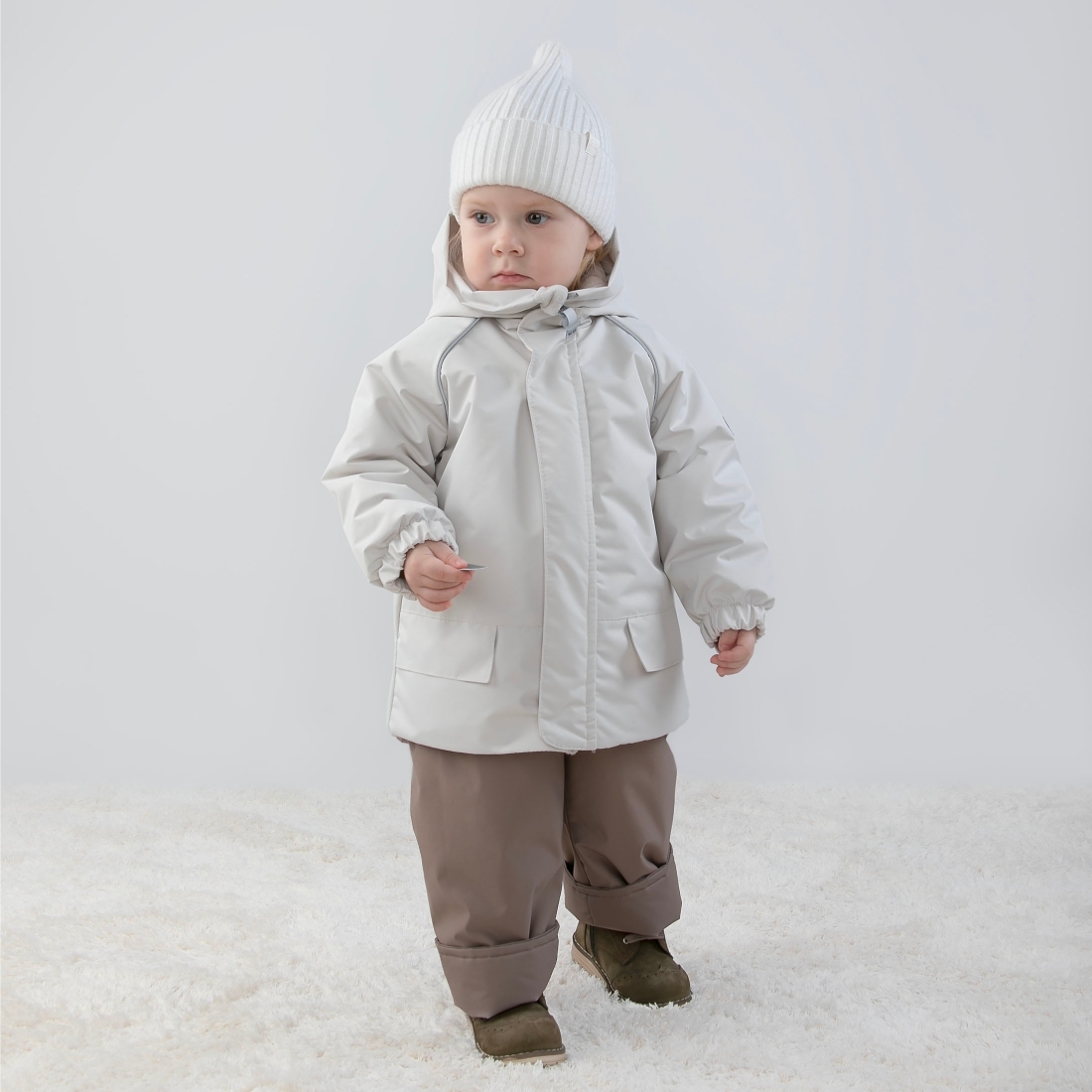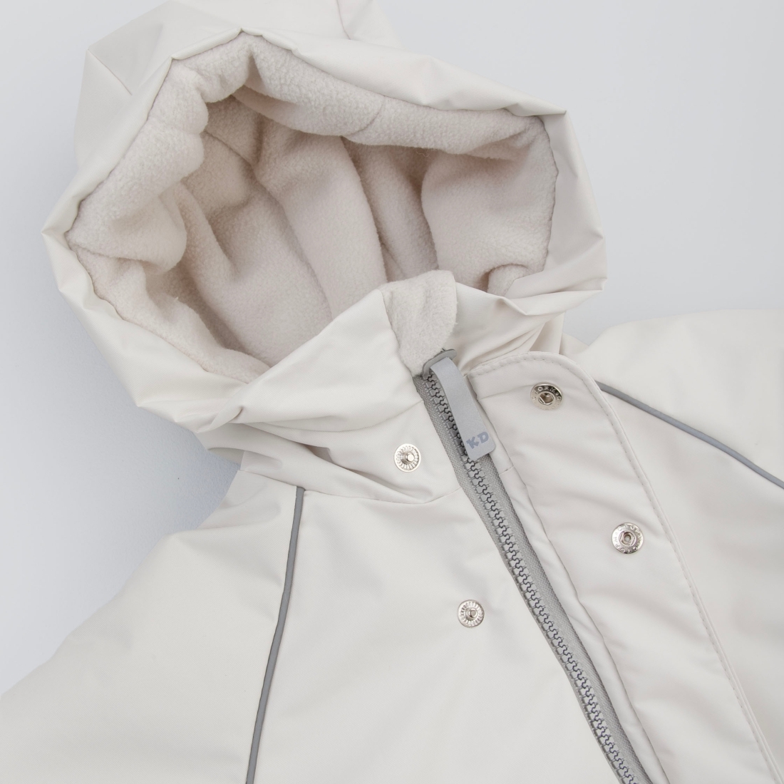 Капюшон с отворотом. Застежка молния с планкой, фиксируется на кнопки.