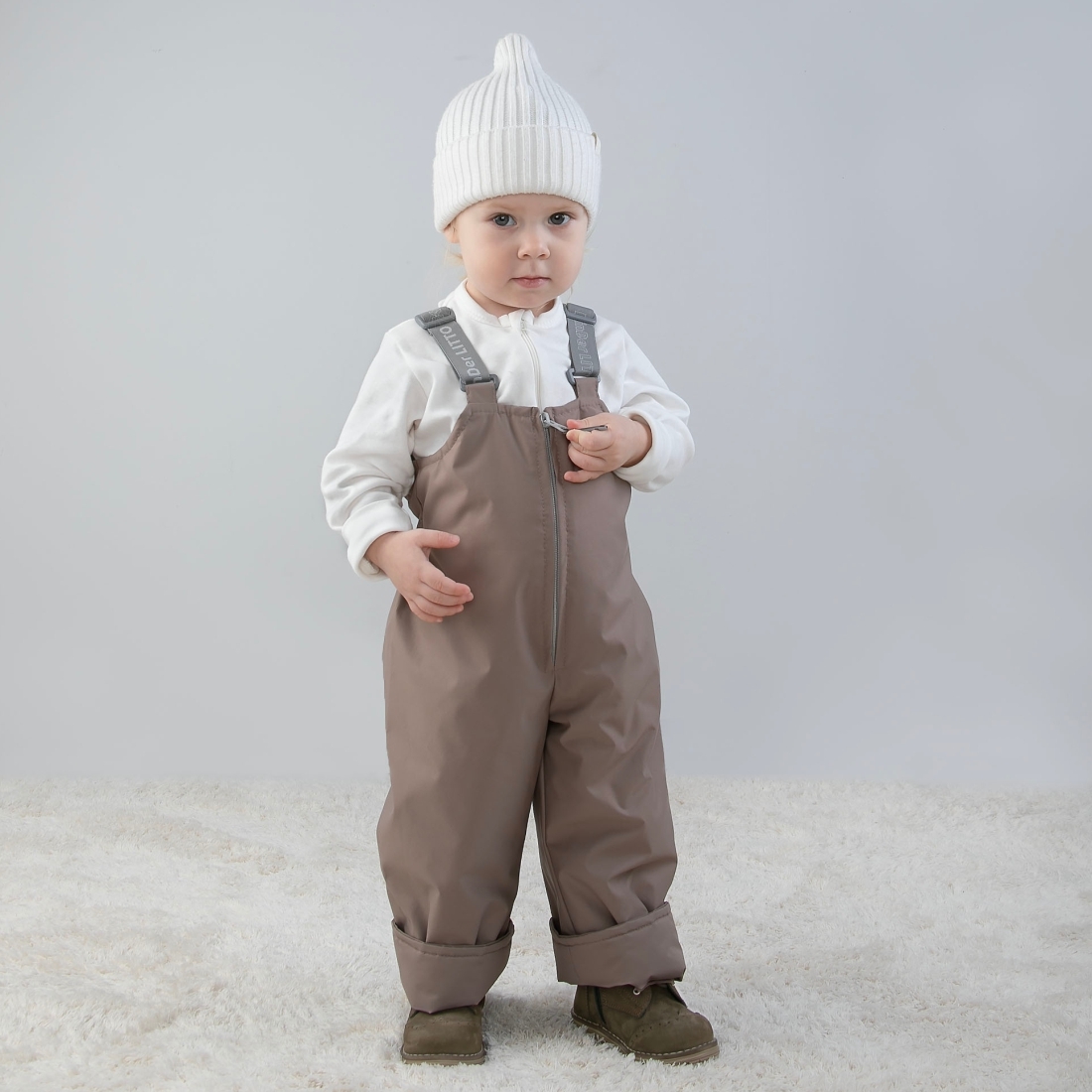 Застежка молния, регулируемы подтяжки на мягкой резинке.