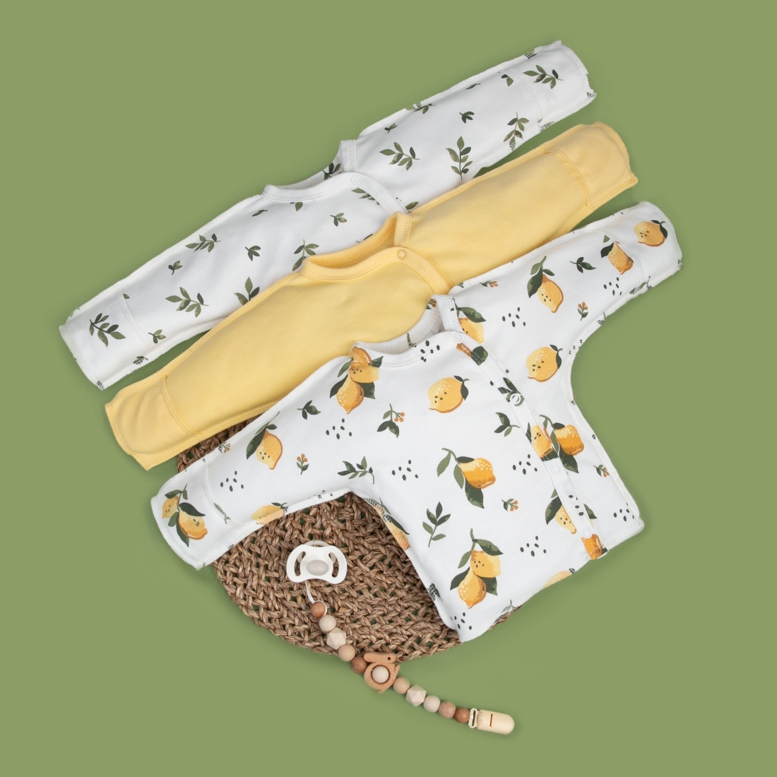 Распашонки запашные, на 3 кнопках по передней половинке. Швы наружу.