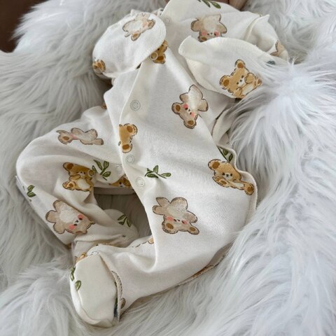 Кнопки по всей длине изделия, отвороты - рукавички.Отвороты-рукавички предусмотрены только для 56 и 62 размеров.Состав: трикотаж интерлок высшего качества (хлопок 100%).