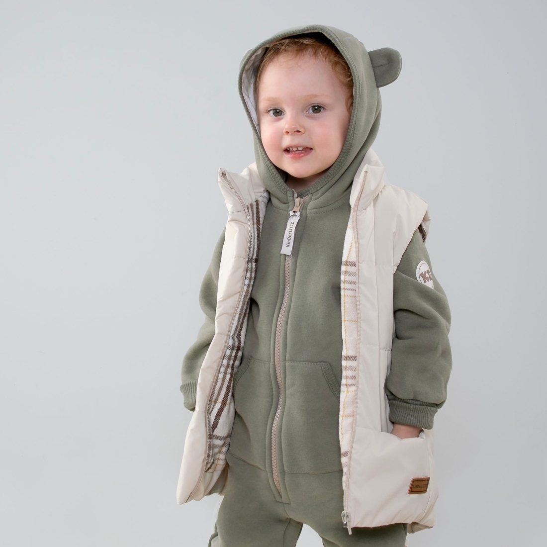 Жилетка утепленная с высоким воротом, центральная застежка на молнию.