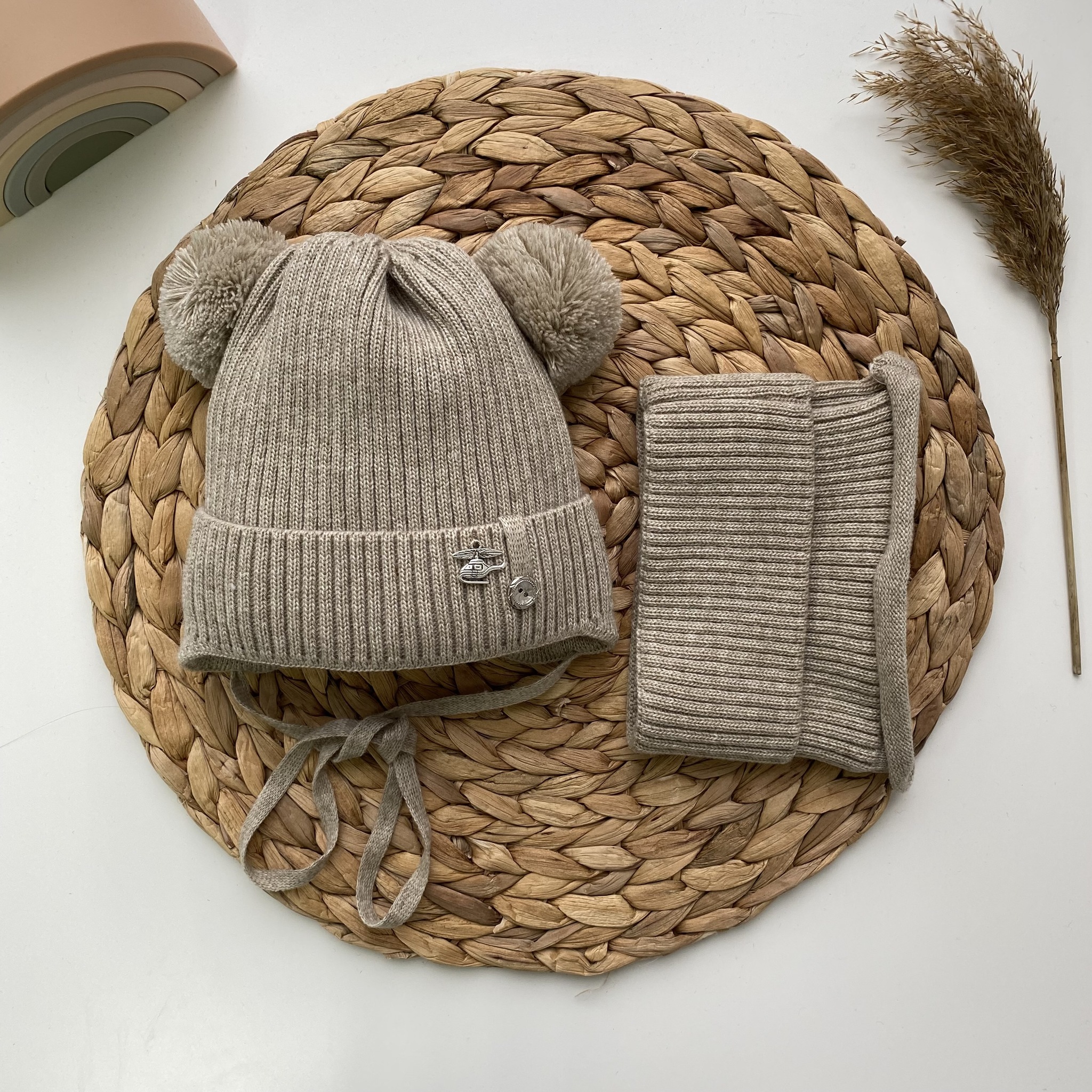 Зимняя шапочка со снудом, нижний слой выполнен из трикотажного хлопкового полотна. Можно носить без чепчика.