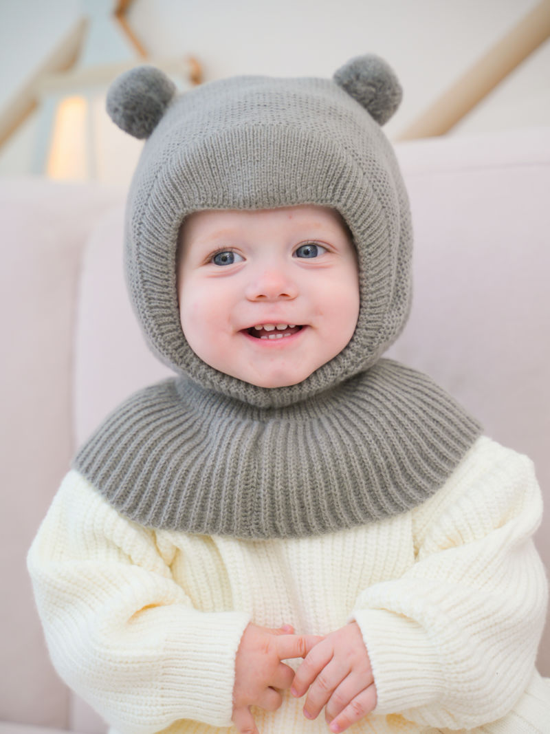 Теплый зимний шлем для с двумя небольшими помпонами на макушке. Верхний слой шапочки связан из полиэфира, подкладка выкроена из х/б полотна и полностью пришита, утеплитель по всему шлему (кроме манишки). Вокруг лица вязка-резинка. При повороте головы шлем не закроет глаз, оголив ухо. Лоб от ветра защитит вывязанный мысик. Размер равен окружности головы в см. Подойдет на температуру до -25 градусов (с теплым капюшоном).