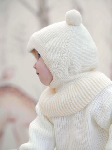 Теплый зимний шлем для с двумя небольшими помпонами на макушке. Верхний слой шапочки связан из полиэфира, подкладка выкроена из х/б полотна и полностью пришита, утеплитель по всему шлему (кроме манишки). Вокруг лица вязка-резинка. При повороте головы шлем не закроет глаз, оголив ухо. Лоб от ветра защитит вывязанный мысик. Размер равен окружности головы в см. Подойдет на температуру до -25 градусов (с теплым капюшоном).